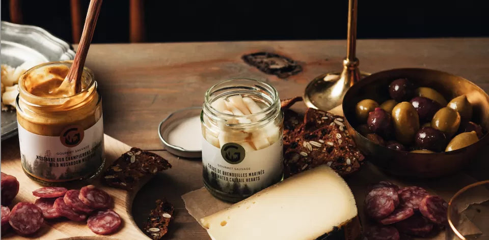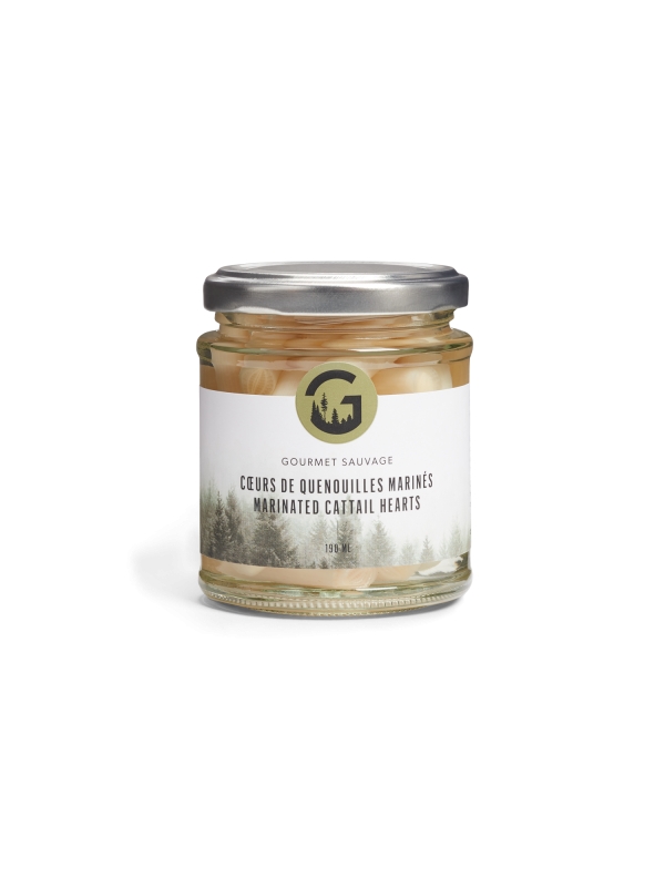 190 ml | C’est le caviar des plantes sauvages! Le coeur de quenouille est prélevé tout près de la racine, dans la partie immergée de la plante. Délicat et légèrement croquant, il rappelle le coeur de palmier mais sa finesse n’a pas d’égal! C’est un produit artisanal d’exception dont la récolte est ardue, qui de notre avis est l’un des mets les plus particuliers et porteur d’histoire que la forêt puisse offrir!
