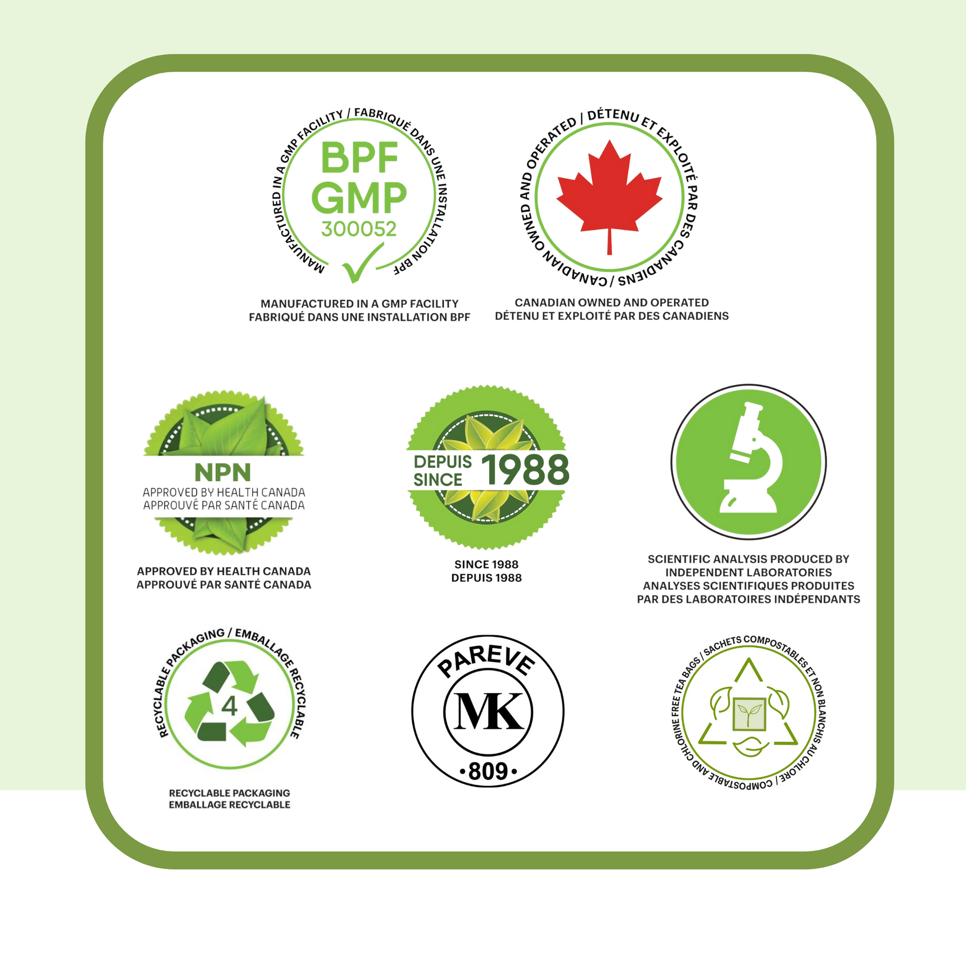 Plusieurs de nos produits portent un NPN approuvé par Santé Canada ou sont testés en laboratoire. Cette information est toujours indiquée sur l’emballage.