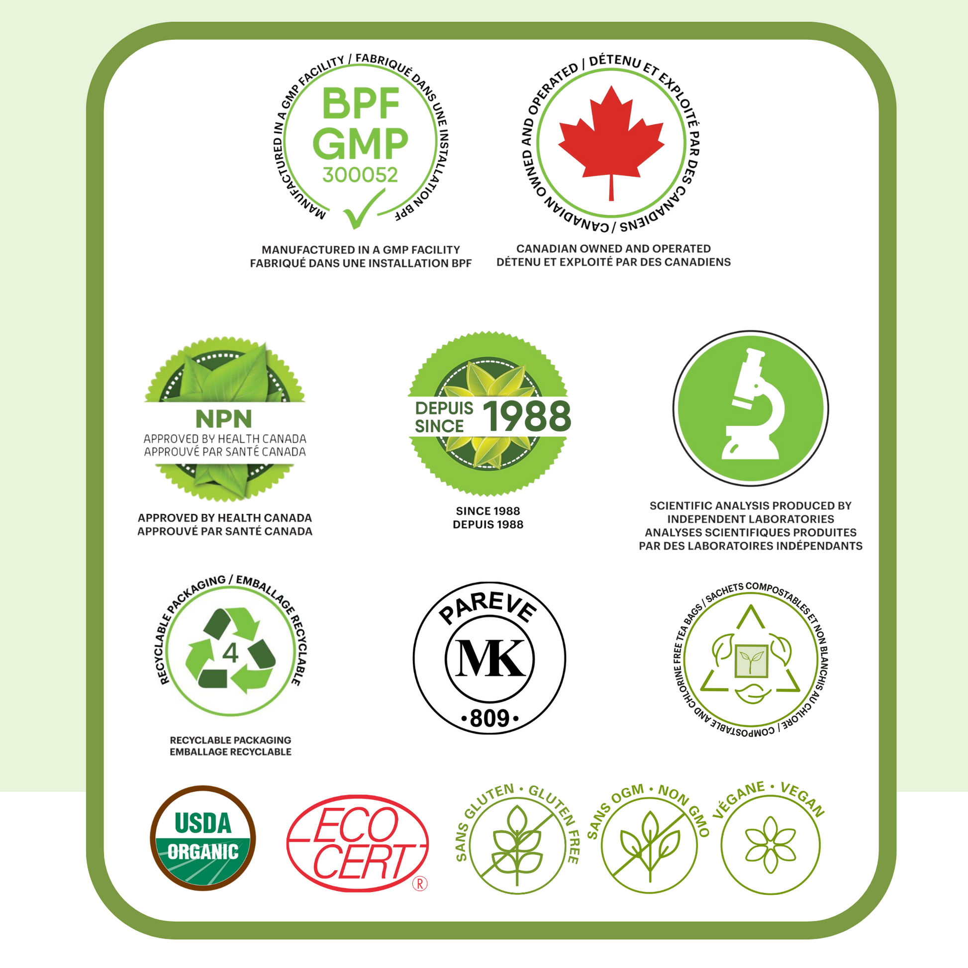 Plusieurs de nos produits portent un NPN approuvé par Santé Canada ou sont testés en laboratoire. Cette information est toujours indiquée sur l’emballage.